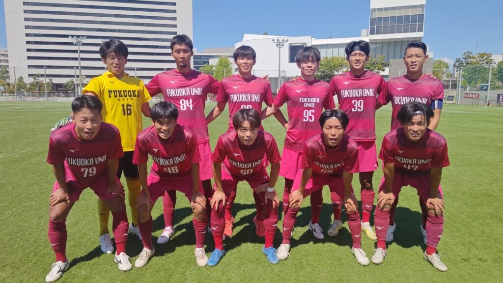 序盤から福岡大は主導権を握る展開。前半4分には相手のFKこぼれ球から強烈なシュートを受け、クロスバーを叩かれる場面もありましたが、すぐにペースを取り戻しました。