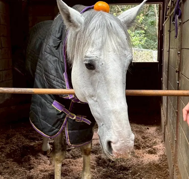 大きな耳とチャーミングなピンク色の鼻がトレードマークのテツワンイナキチ。その可愛らしいビジュアルとは裏腹に、障害馬術の競技会では数々の好成績を収め続けている実力派です。